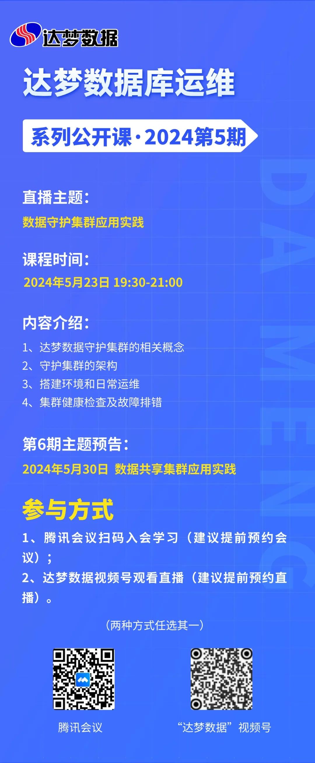 5月23日晚七点半!达梦数据库运维系列公开课第⑤期《数据守护集群应用实践》准时开播!