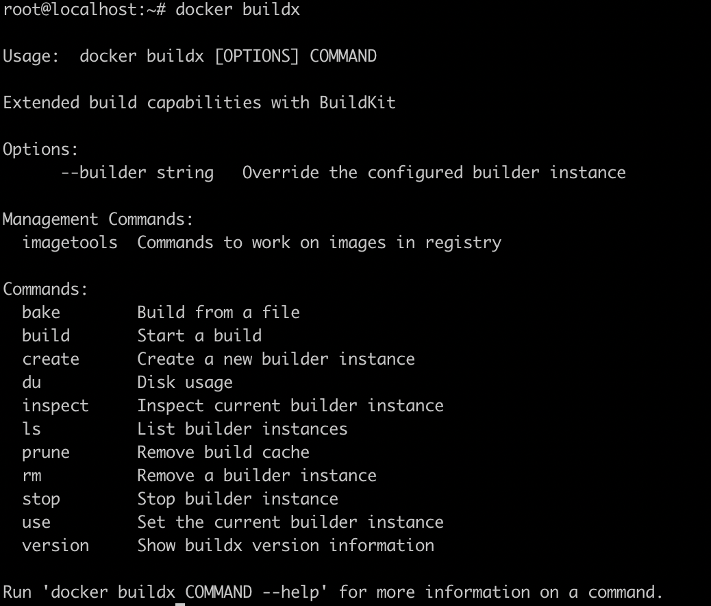 之后可以检查一下 Docker Buildx 命令是否可用。