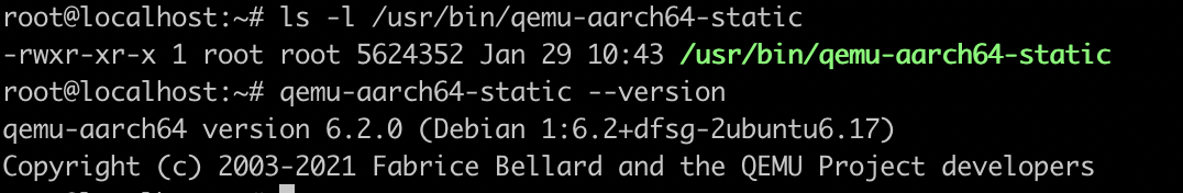 ls -l usr/bin/qemu-aarch64-staticqemu-aarch64-static --version