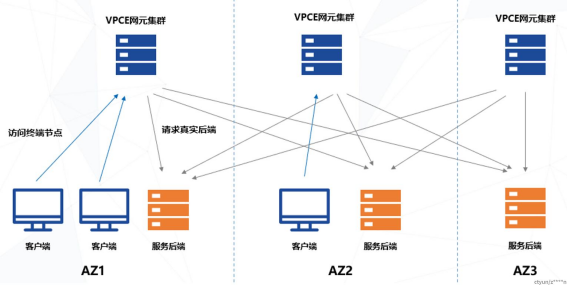 2.就近访问:就近通过本AZ网元转发,最大化减少跨AZ流量,并且同AZ内多个网元负载均衡