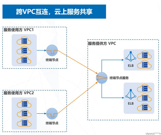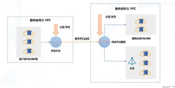 VPC终端节点(VPC Endpoint):能够将VPC私密地连接到终端节点服务(云服务、用户私有服务等),使VPC中的云资源无需弹性公网IP就能够访问服务提供方的服务,提高了访问效率,提供了更加灵活、安全的组网方式。