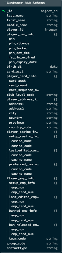 作为该解决方案的一部分,L Casino 计划将 SQL Server 中的所有现有表合并到 MongoDB 内的单一聚合表中。这样的整合旨在创建一个全面的数据集,以涵盖客户信息的方方面面。为了实现统一的客户 360 视图,还将在进行数据同步的过程中,应用复杂的数据转换技术。这些转换旨在统一不同的数据格式和结构,为最终用户提供一致且丰富的客户行为理解。