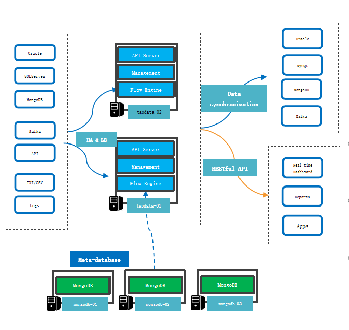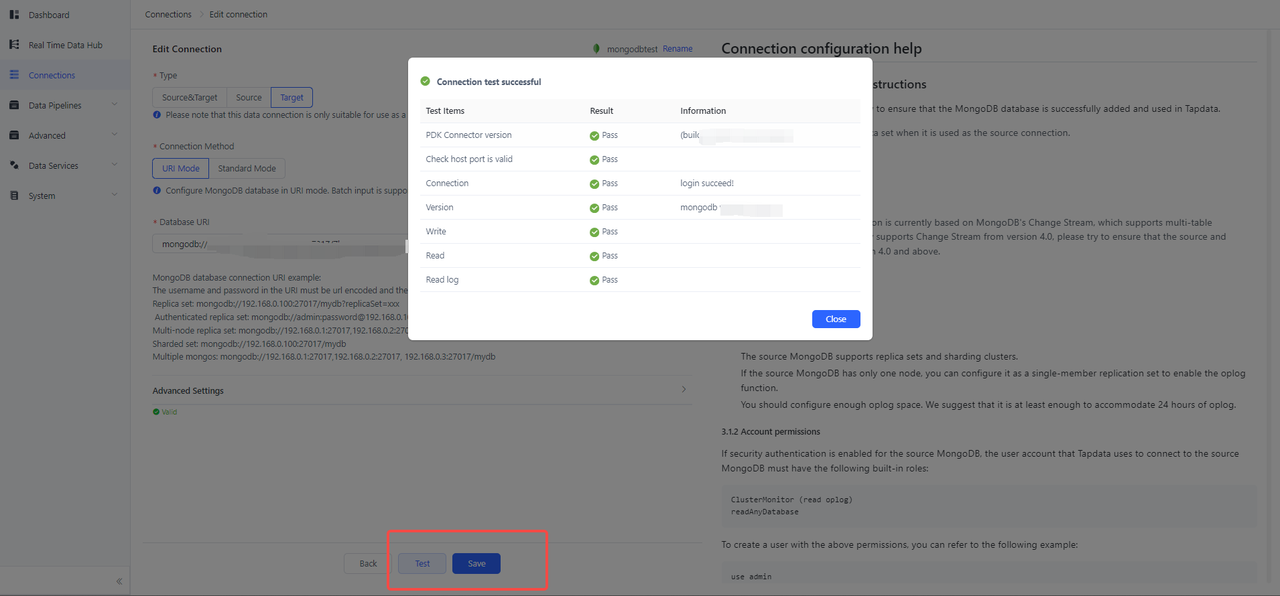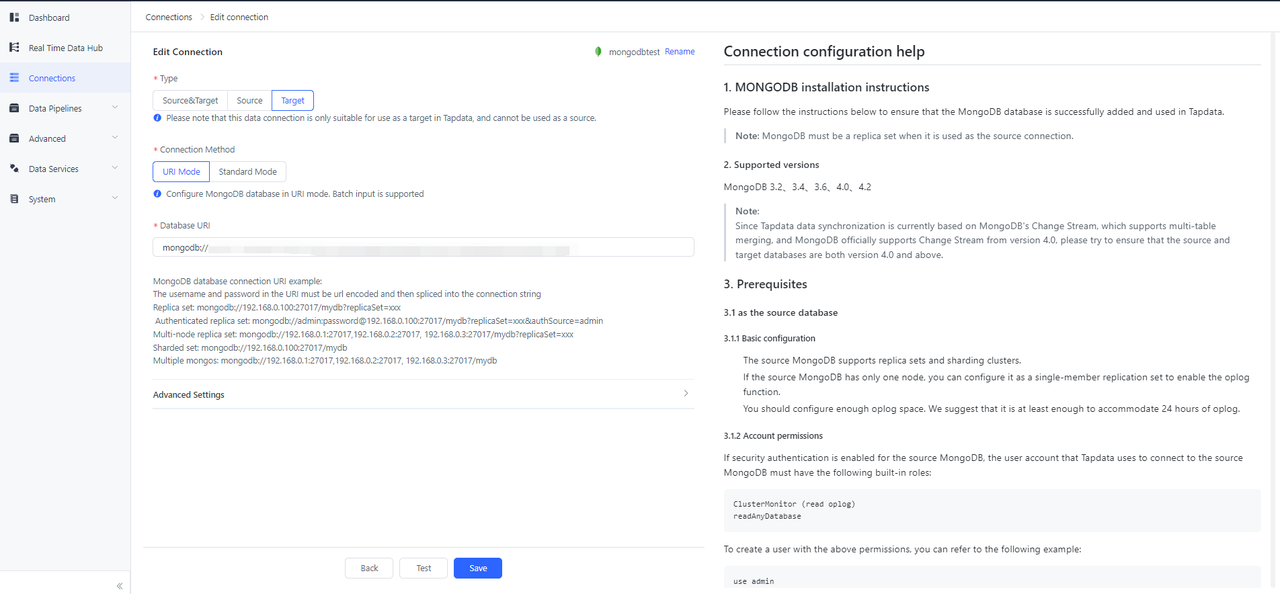 借助 TapData 可快速建立 SQL Server 和 MongoDB 的连接,保证源库和目标库之间稳定可靠的连接。