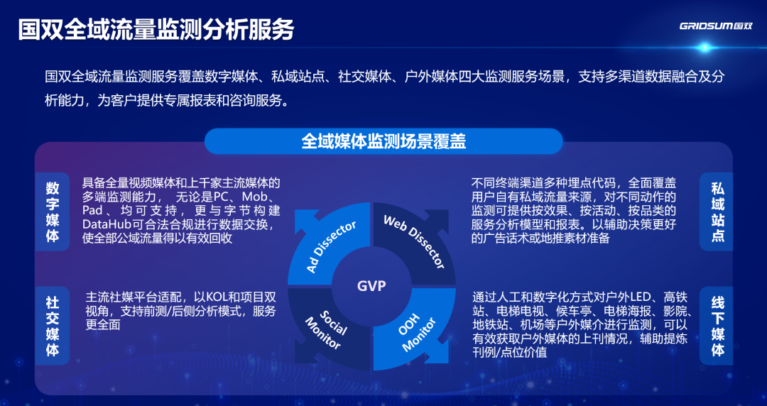 总之,国双AD 凭借其全面覆盖、领先技术、深度对接、数据驱动和专业服务等多重优势,为企业级客户提供一站式广告监测评估的相关解决方案。国双愿与客户携手同行,在数字营销时代,不断实现商业价值的增长与提升。