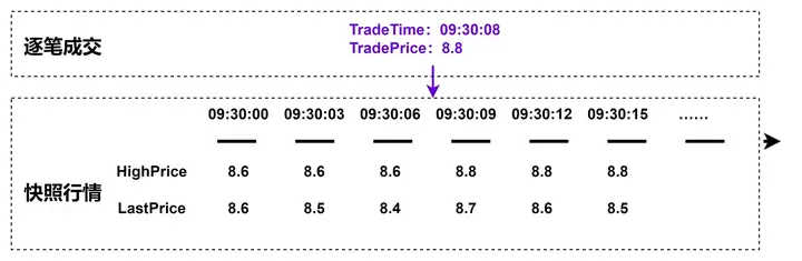 在此方案基础上,用户亦可使用一套代码实现流批一体 K 线合成,以满足产研一体化需求。用户只需根据教程中基于实时快照行情数据合成 K 线的部分,全速回放全量历史数据,然后将回放所得的 K 线计算结果存入分区表中,即可实现基于历史快照行情合成 K 线。实盘实时计算,则按前文所述,接入实时行情数据即可。