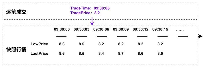 当日最低价(LowPrice)在当前计算窗口内发生变化,但是当前计算窗口内的所有最新价(LastPrice)并不包含发生在当前计算窗口内的当日最低价。