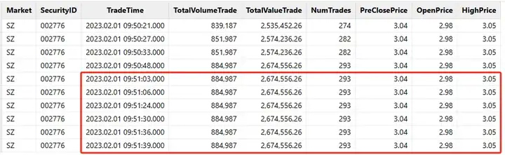 当日最高价(HighPrice)在当前计算窗口内发生变化,但是当前计算窗口内的所有最新价(LastPrice)并不包含发生在当前计算窗口内的当日最高价。