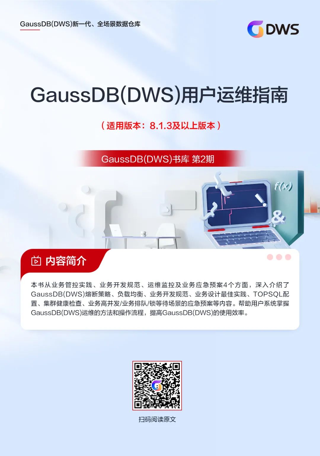 《GaussDB(DWS)用户运维指南》从业务管控实践、业务开发规范、运维监控及业务应急预案4个方面,深入介绍了GaussDB(DWS)熔断策略、负载均衡、业务开发规范、业务设计最佳实践、TOPSQL配置、集群健康检查、业务高并发/业务排队/锁等待场景的应急预案等内容。帮助用户系统掌握GaussDB(DWS)运维的方法和操作流程,提高GaussDB(DWS)的使用效率。