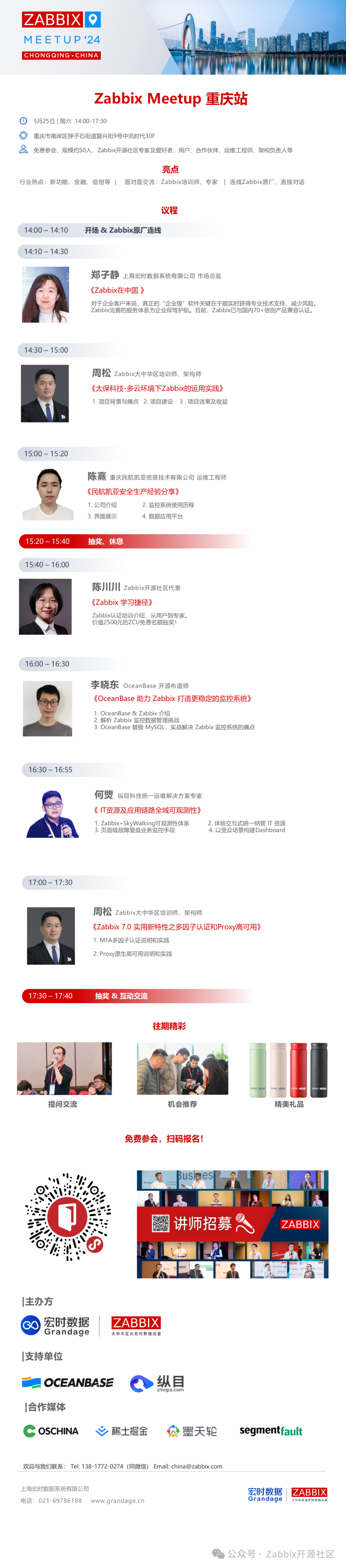 4月27日,Zabbix城市行再次来到广州,于未来社区成功举办。天气不佳但热情依旧,这场盛会集合了讲师们的经验心得、案例分享,50多位嘉宾都享受其中,收获颇丰!