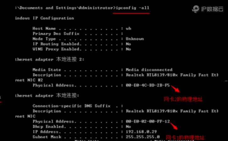 MAC地址:即物理地址,普遍是由网卡生产厂家写入网卡的闪存芯片,存储着传输数据时真正物理意义上的发出数据的电脑机器和接受数据的主机地址。即全网唯一,固化的,依托网卡EPROM中的地址。