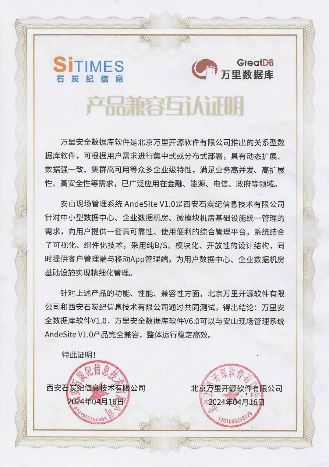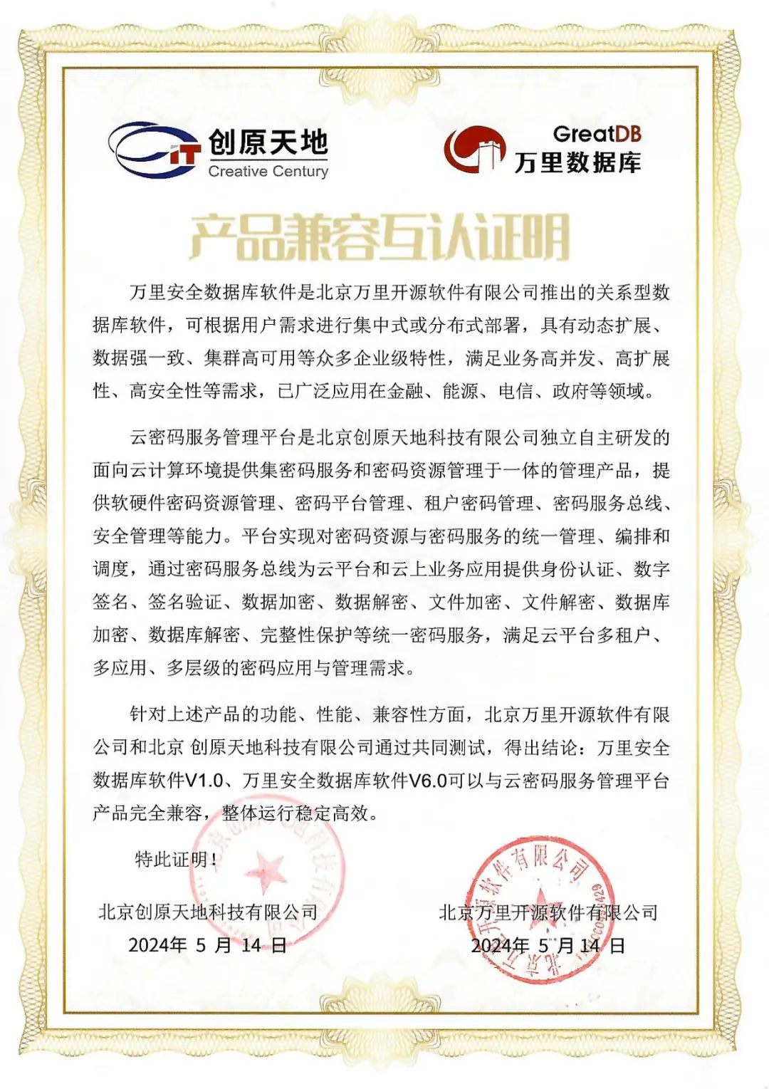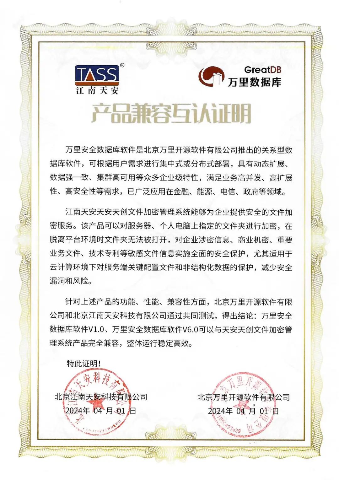 在4月适配认证中,万里安全数据库与众多行业应用系统完成兼容测试,涉及工业、医疗、政企、能源等多领域,充分验证了万里安全数据库GreatDB的国产生态兼容实力。