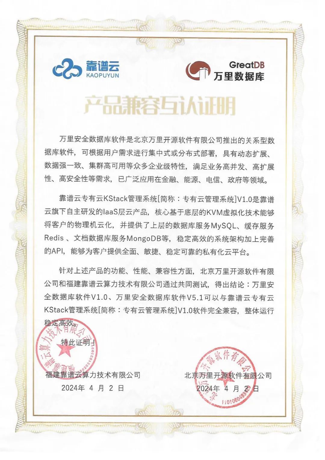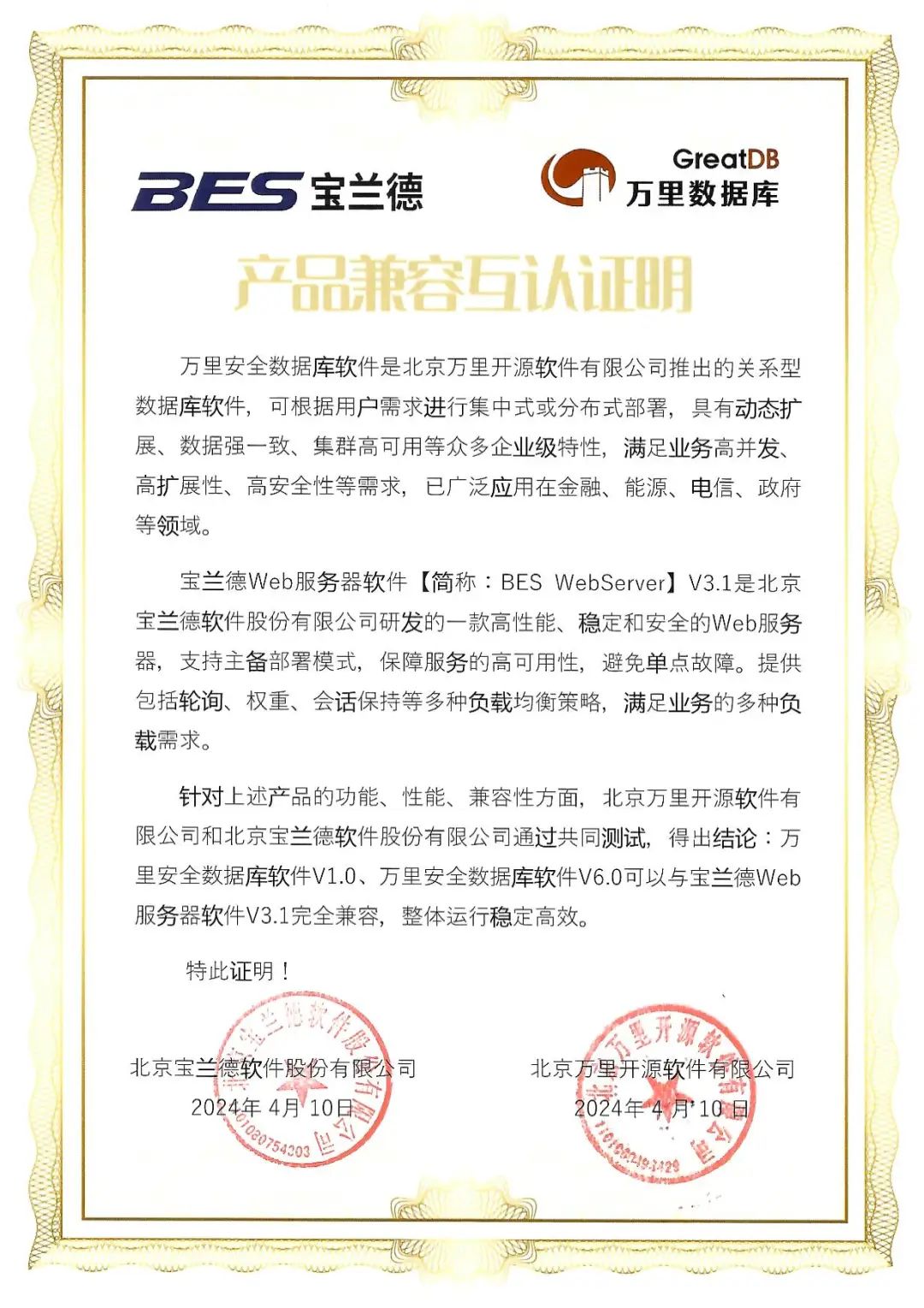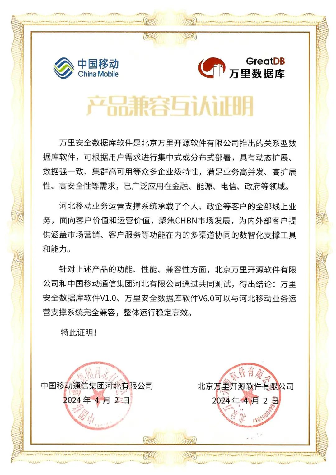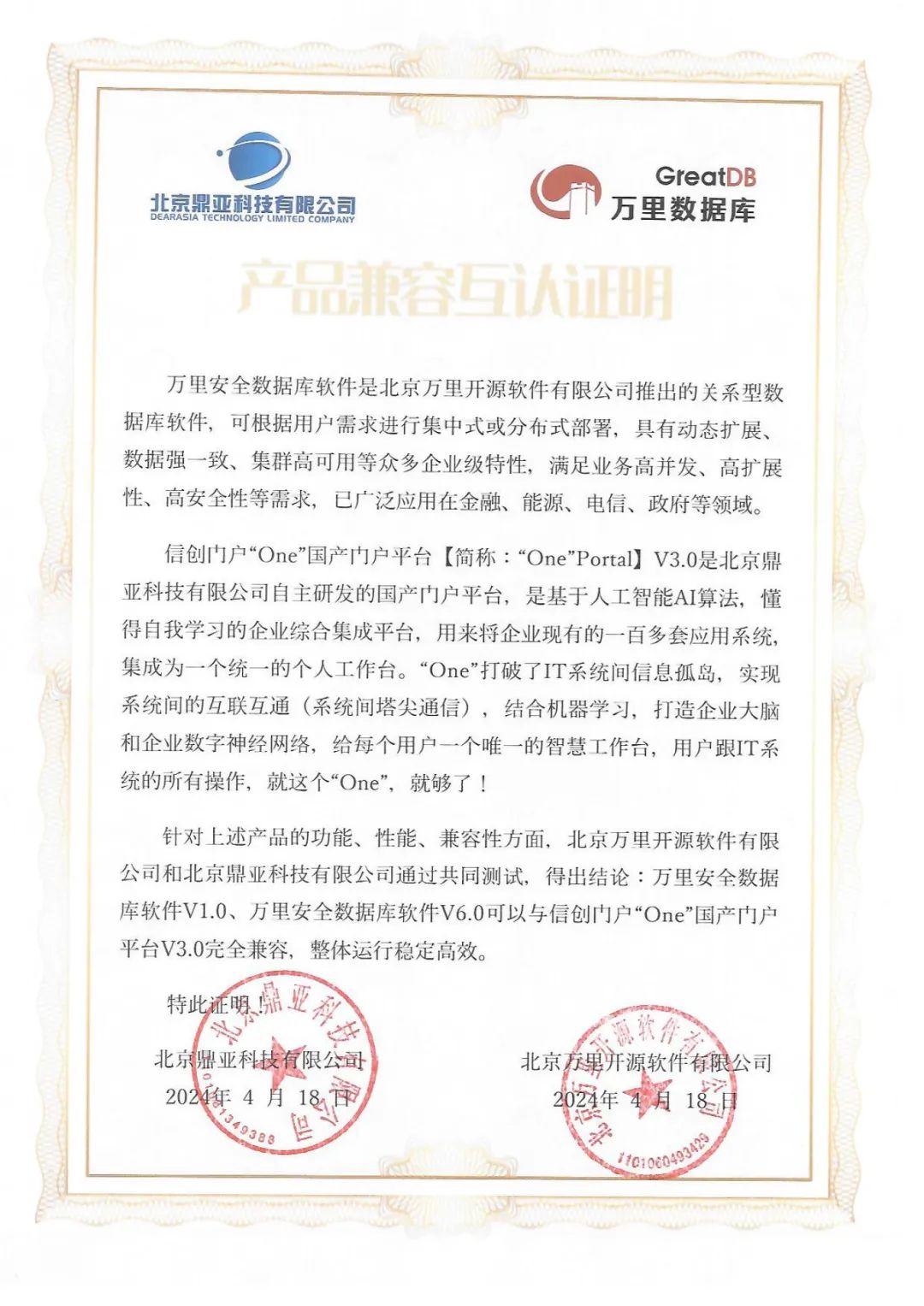在4月适配认证中,万里安全数据库与众多行业应用系统完成兼容测试,涉及工业、医疗、政企、能源等多领域,充分验证了万里安全数据库GreatDB的国产生态兼容实力。