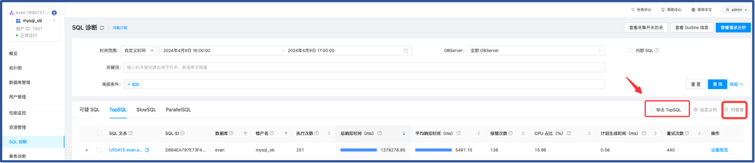 1. OCP 云平台,复制 SQL ID