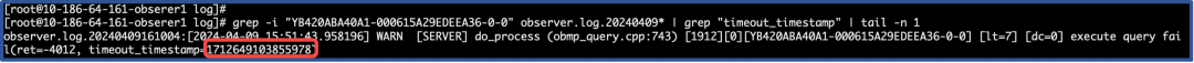 # grep -i "YB420ABA40A1-000615A29EDEEA36-0-0" observer.log.20240409* | grep "timeout_timestamp" | tail -n 1