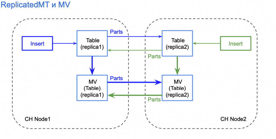 CREATE MATERIALIZED VIEW mv1 TO destSELECT ...FROM source left join some_dimension on (...)CREATE MATERIALIZED VIEW mv2 TO destSELECT ...FROM some_dimension right join source on (...)