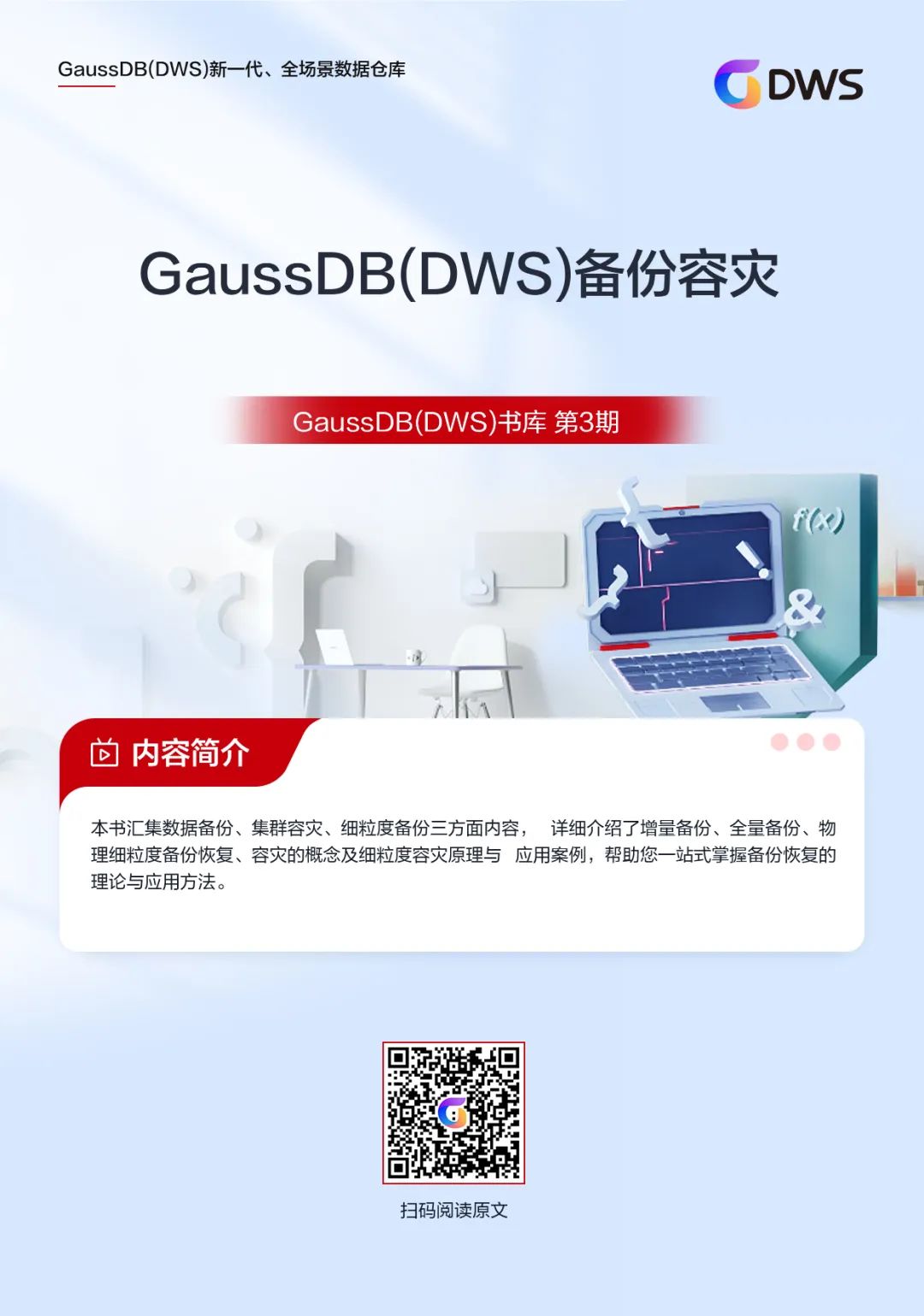 《GaussDB(DWS)备份恢复》汇集数据备份、集群容灾、细粒度备份三方面内容, 详细介绍了增量备份、全量备份、物理细粒度备份恢复、容灾的概念及细粒度容灾原理与 应用案例,帮助您一站式掌握备份恢复的理论与应用方法。