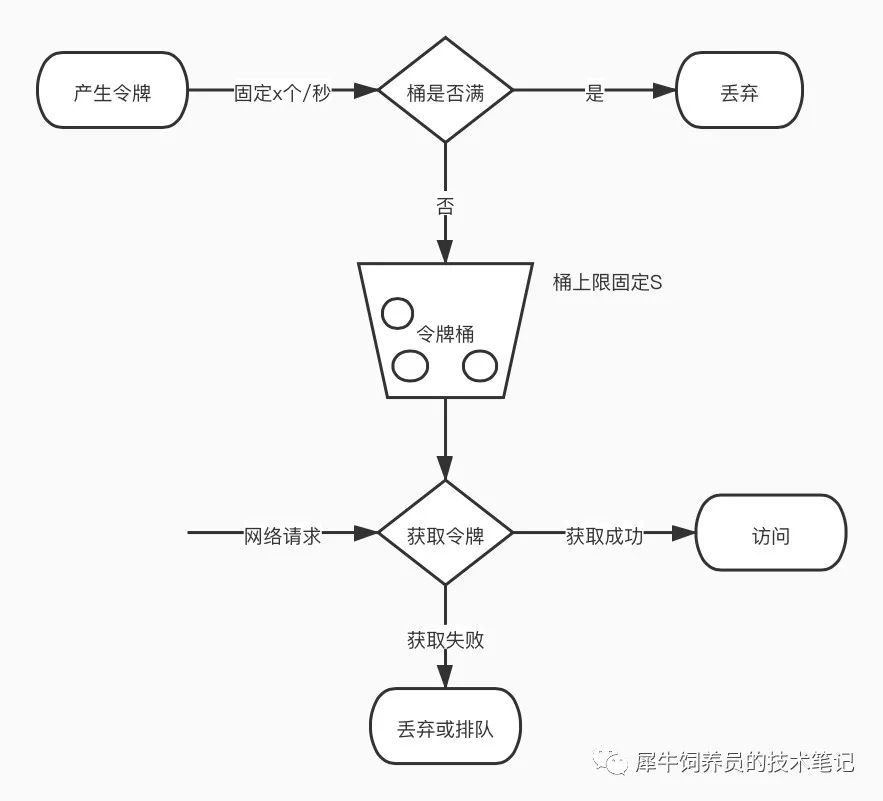 令牌桶是按照固定速率往桶中添加令牌,请求是否被接受需要看桶中令牌是否足够,当令牌数减为零时则拒绝新的请求。