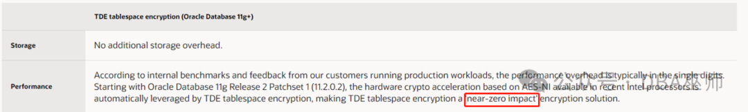 官方建议是使用 TDE 表空间加密。在大多数情况下,TDE 表空间加密具有更好、更一致的性能特征。此外,表空间加密特别利用基于硬件的加密加速(如果可用),将性能影响进一步降至“接近零”范围。