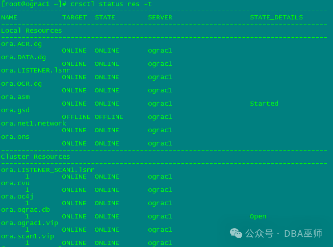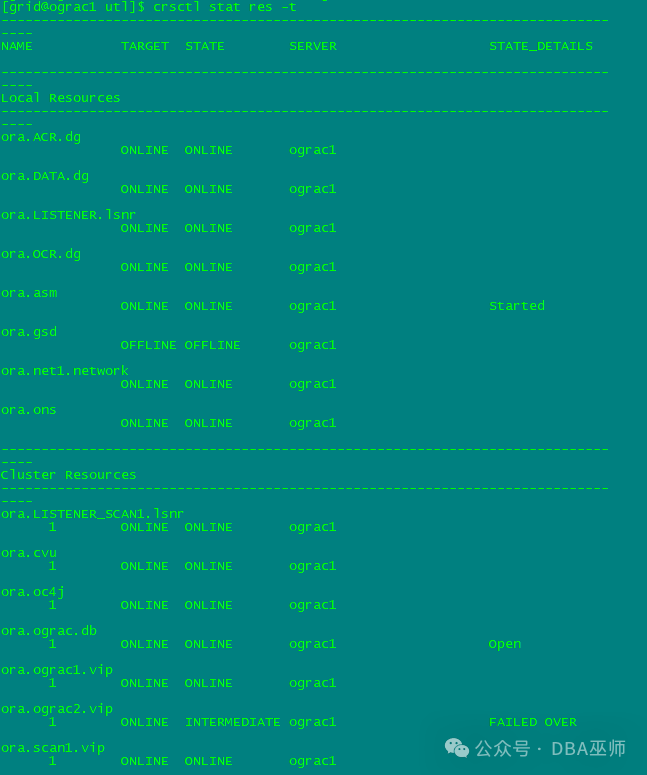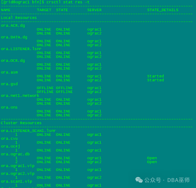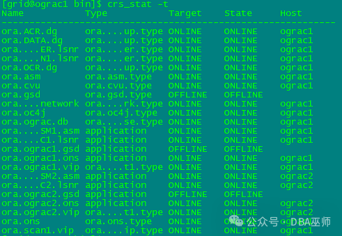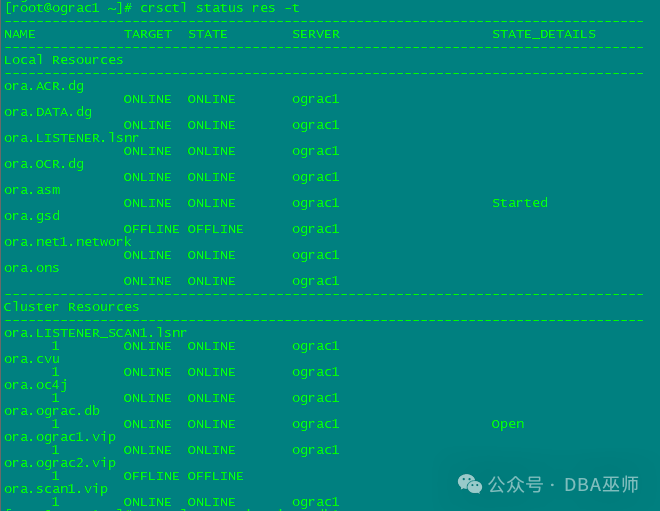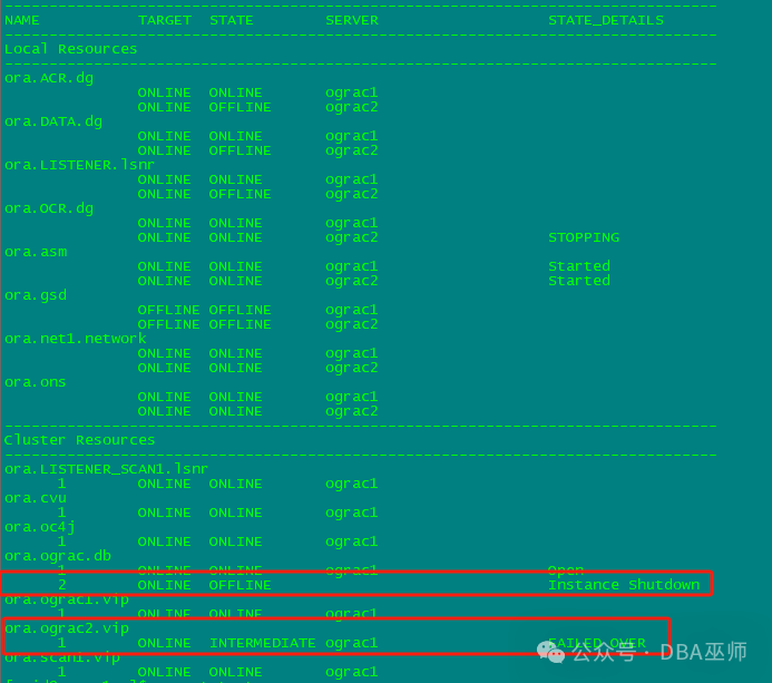 确认一下数据库总共有两个节点,ograc1和ograc2,但根据之前的检查结果确定ograc2实例down掉