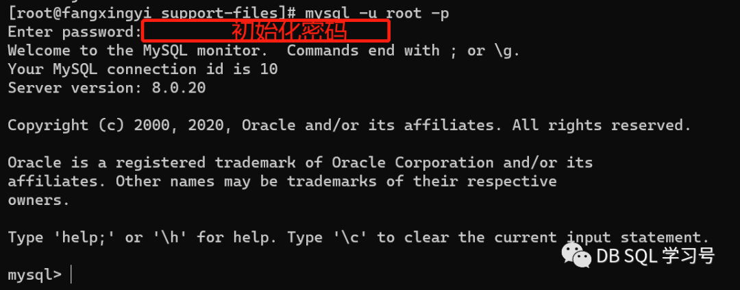 执行初始化后如下图,图上红色标记框为数据库默认密码。