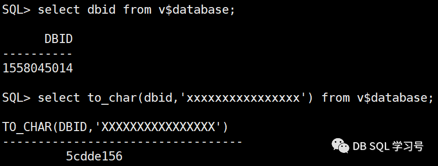DBID 是在数据库创建的时候用DB_NAME结合算法计算出来的,由一串数字组成,它存在于 datafile 和 control file 中,用来表示数据文件的归属,所以DBID是唯一的,对于不同的数据库,DB_NAME可以是相同的,但是DBID一定是唯一的,我们还是以上图的 system01.dbf 为例,它是以倒序的形式存储在数据文件头部的。