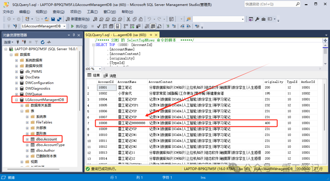 查询数据库内数据,修改的信息已经正常更新到数据库;