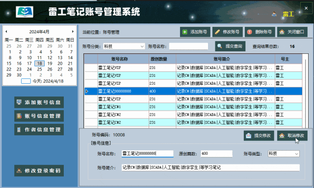 昨天练习了账号管理系统-修改账号按钮功能的实现: