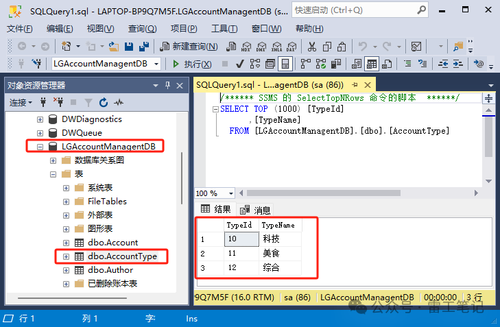 SQLServer数据库LGAccountManagentDB中AccountType表的数据内容为: