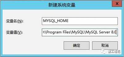 1、新建系统变量:MYSQL_HOME ,变量值是上面更改的MYSQL安装路径,点击确定;