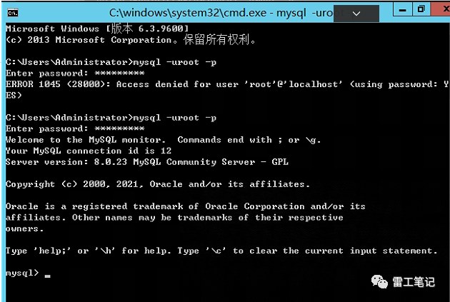 2、输入mysql -u root -p 回车,再输入你自己的密码,就可以登陆数据库了