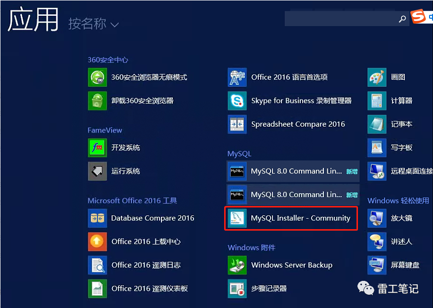 找到:MySQL Installer - Community(一般就在开始菜单哪里),一直下一步就好了