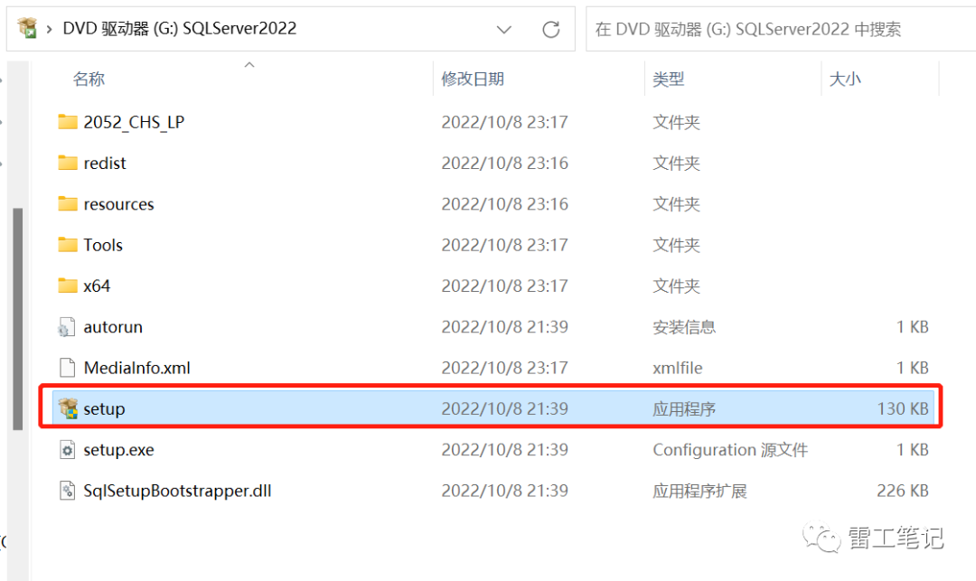 2、打开SQL Server 2022镜像文件包,双击setup。