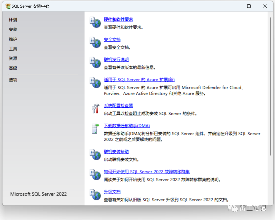 3、 在SQL Server安装中心,可以点击硬件和软件要求查看自己的系统是否支持该版本: