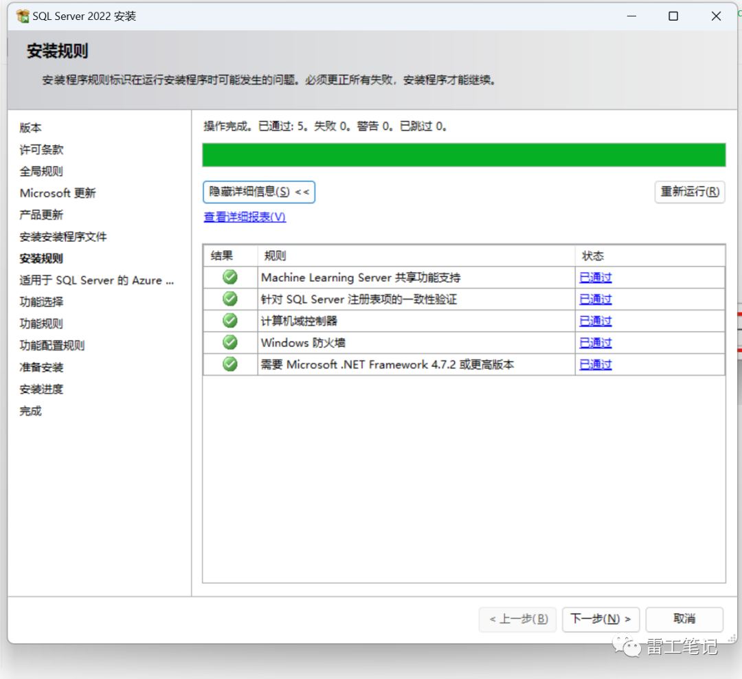 8、安装规则均通过,有问题的更正失败项,然后点击下一步。