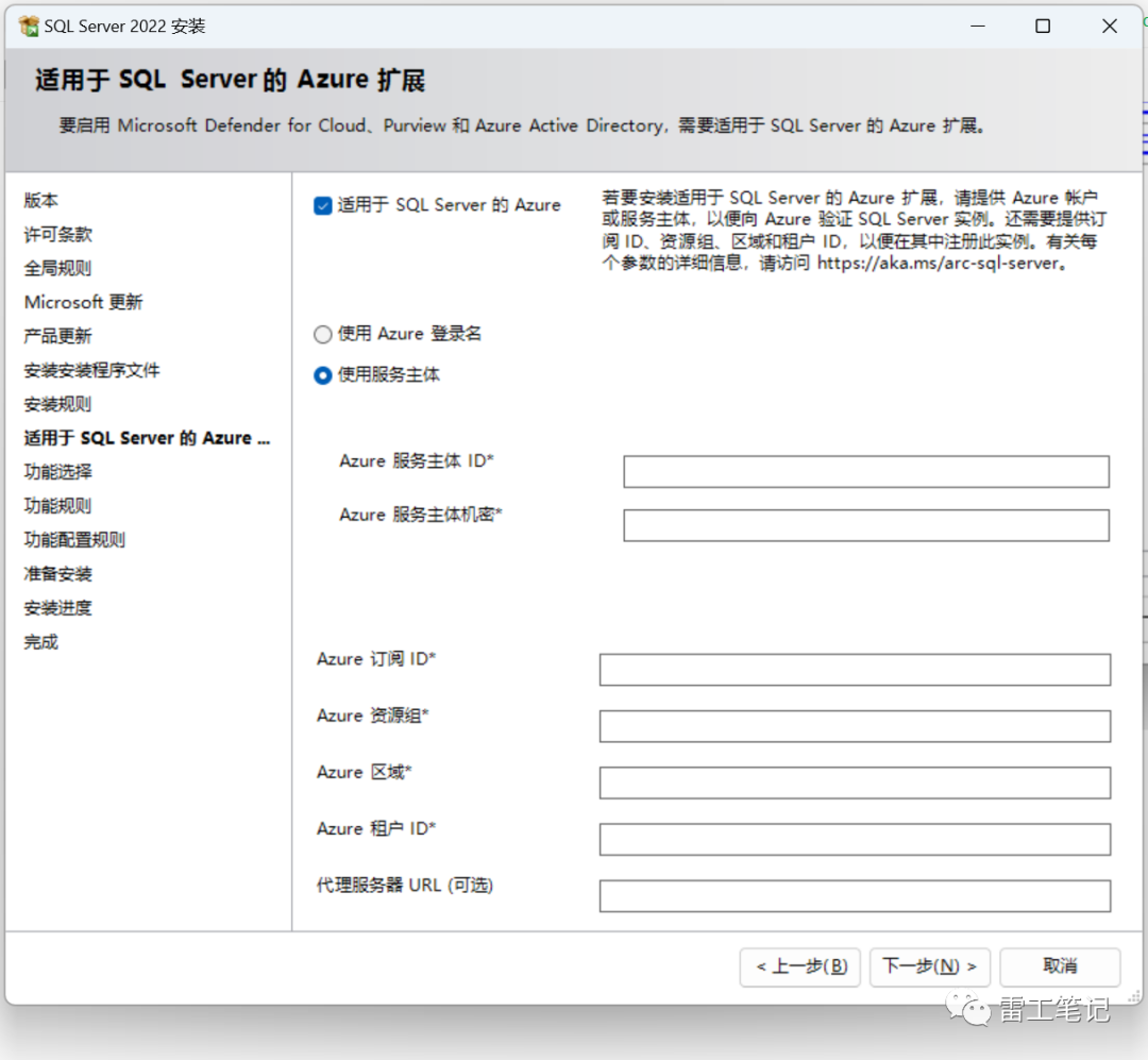 9、此处默认勾选“适用SQLServer的Azure”时点击下一步报错,取消勾选后下一步。