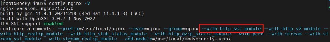 确认已经安装和配置了nginx。 检查安装模块,包含 --with-http_ssl_module 。