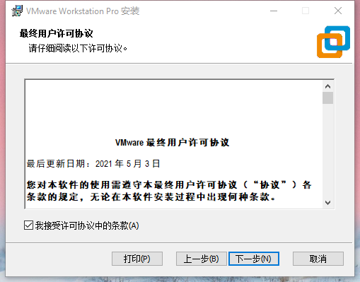 2.2.勾选“接受许可协议框”,点击“下一步”。