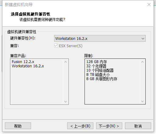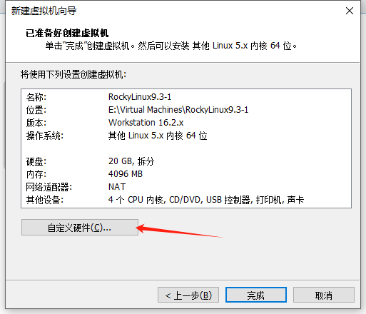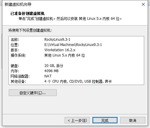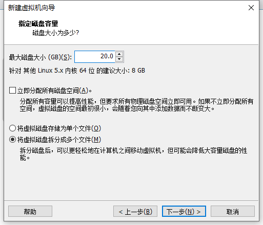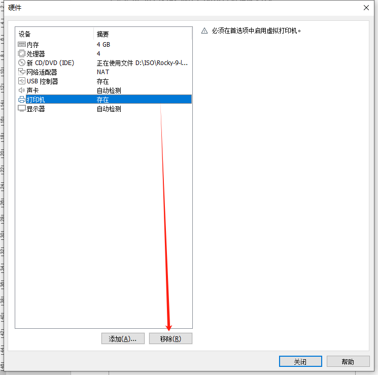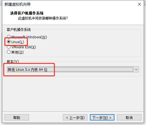 2.5.选择Linux → 其他Linux 5.x内核64位,点击“下一步”。 2.7.根据电脑配置,自行修改如下参数,点击“下一步”。2.8.根据电脑配置,自行修改如下参数,点击“下一步”。 2.17.选择“打印机”等无需用到设备进行移除,点击“关闭”。 3.系统安装