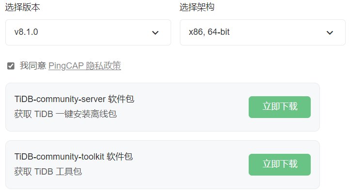 需要同时下载 TiDB-community-server 软件包和 TiDB-community-toolkit 软件包。