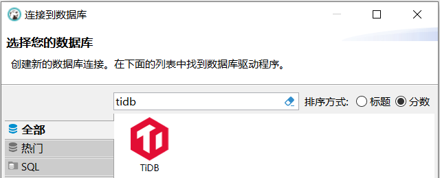 在数据库驱动程序列表中,找到TiDB,如下所示: