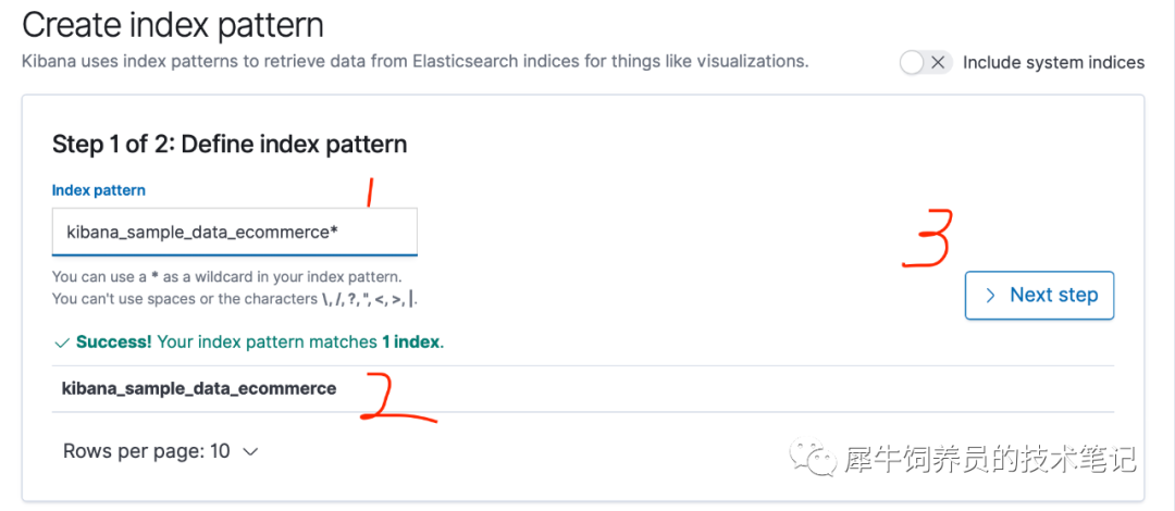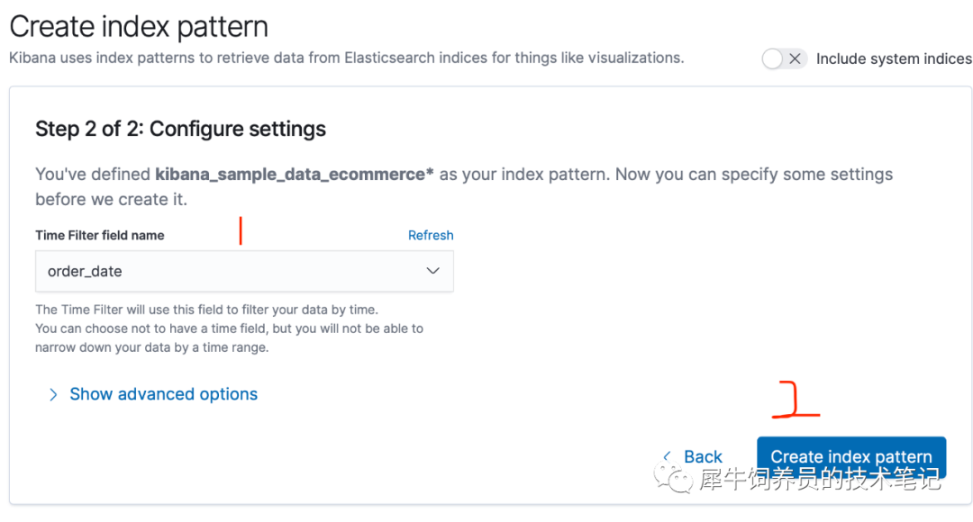 在上图中通过输入index pattern的名称,kibana会自动显示匹配的索引,然后点击next