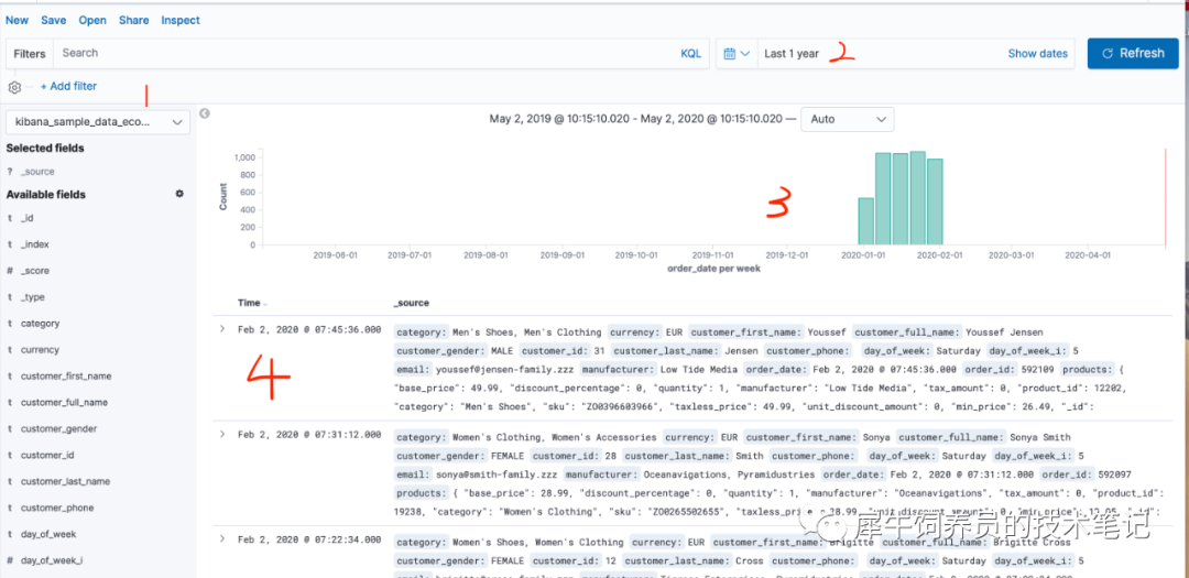 本文使用的示例全部都是基于kibana自带的示例数据,读者自己有兴趣也可以实际操作一下。