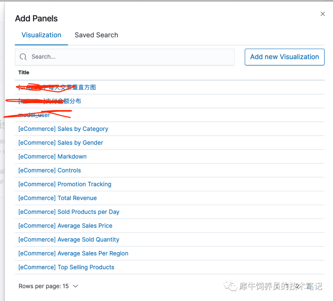 dashboard可以理解为一个展示各种可视化组件的面板,我们可以把之前保存的可视化结果添加到面板中进行展示。