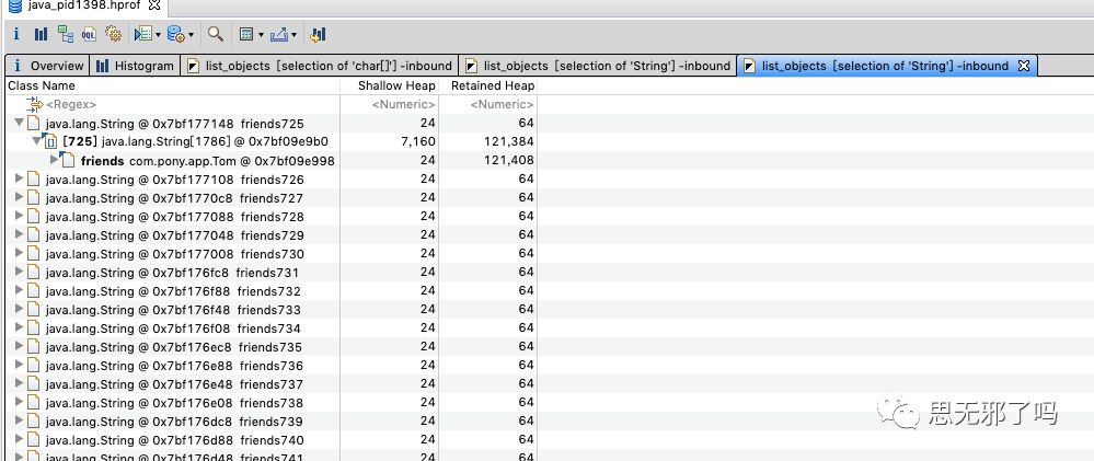 很清晰,Tom对象的friends属性消耗了很多内存。