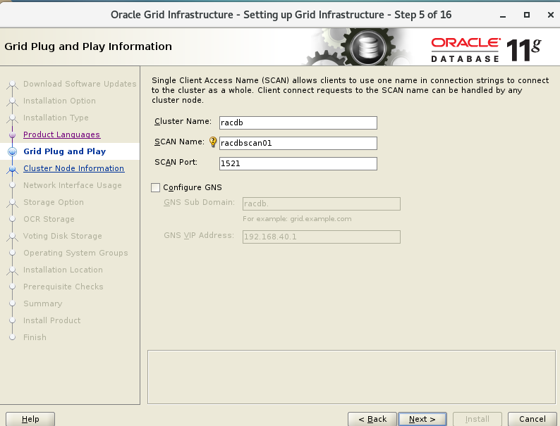 192.168.40.100 racdbscan01 ##安装时注意集群名不要超过 15 个字符,也不能有大写主机名。