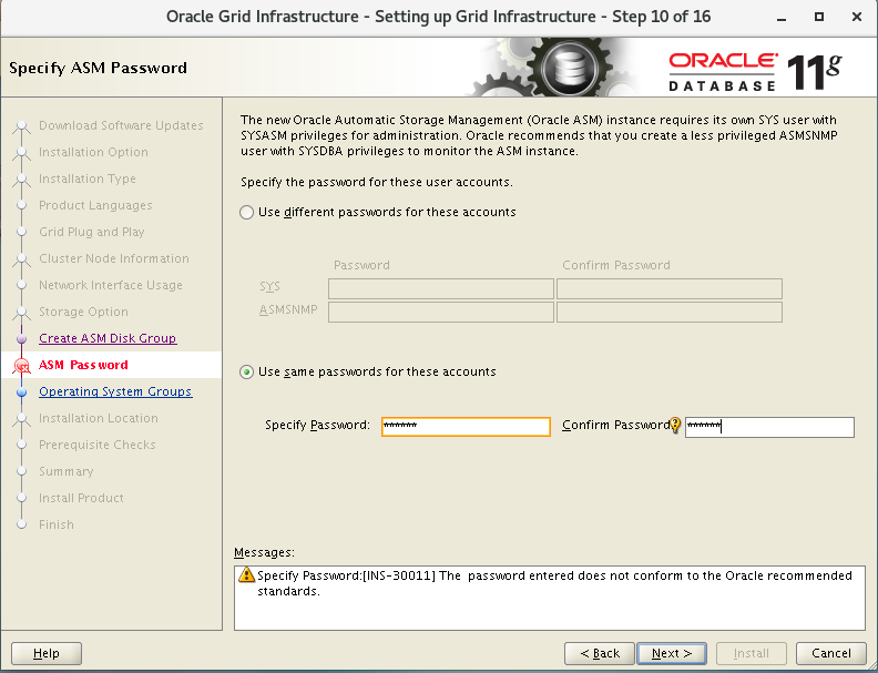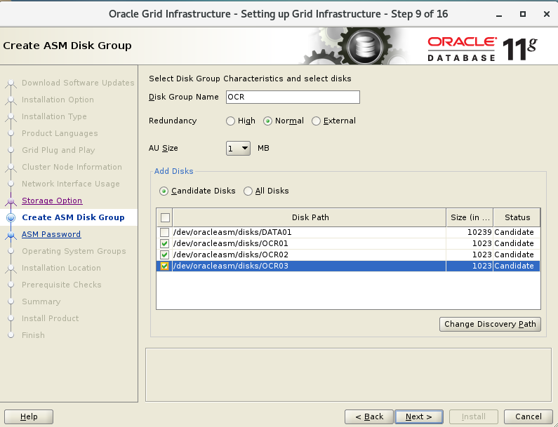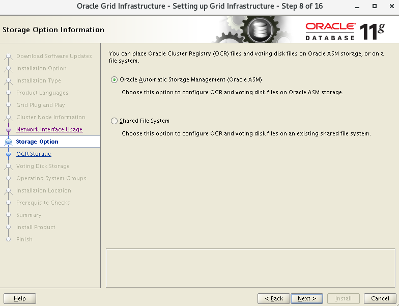 数据文件存储的类型:ASM or 文件系统选择 :ASM