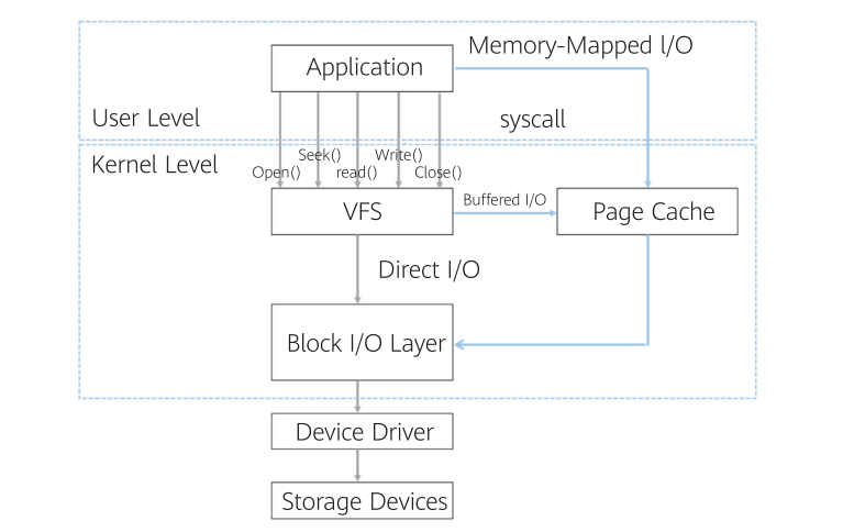 当应用触发文件的随机访问时,会调用一组Syscall去完成文件的操作访问,如open()/seek()/read()/write()/close()等。在这组Syscall中,open()将对文件进行路径查找,将操作系统层级上的路径名转换成其在内核中的表示。open()涉及大量的关联操作,非常消耗系统资源,尤其是针对深层次目录下的文件进行访问。在海量小文件场景下,大量深层次文件的检索直接劣化了open()操作的效率。