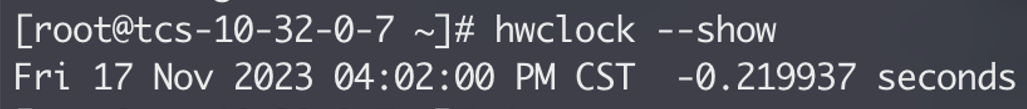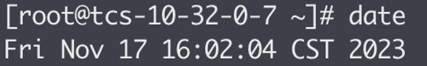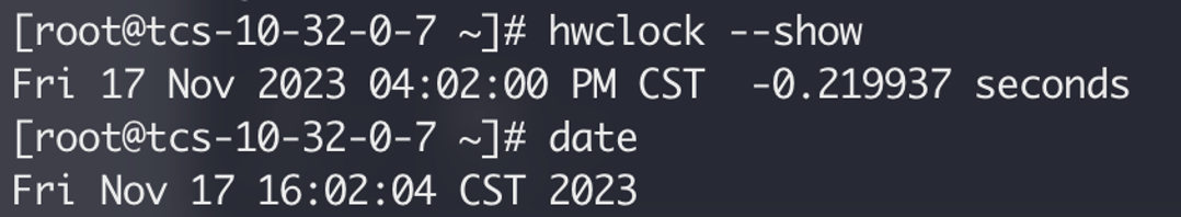 查看软件时钟(与上述检查硬件时钟命令间隔尽量短):date