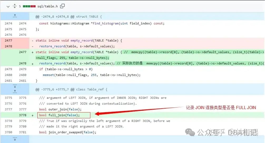 的结构体中的数据成员 outer_join 只代表是否是 left join 或者 outer join,没有信息可以判断是否是 full join,所以需要添加新建的是数据成员 `bool full_join{false};`