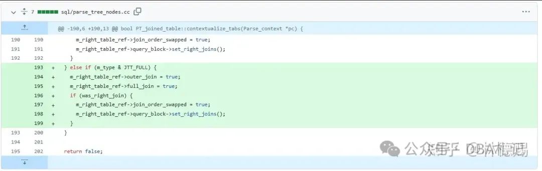 要在 `sql/http://parse_tree_nodes.cc` 的 join table 的语法树的解析函数中 `PT_joined_table::contextualize_tabs` 中添加对 FULL JOIN 语法的处理